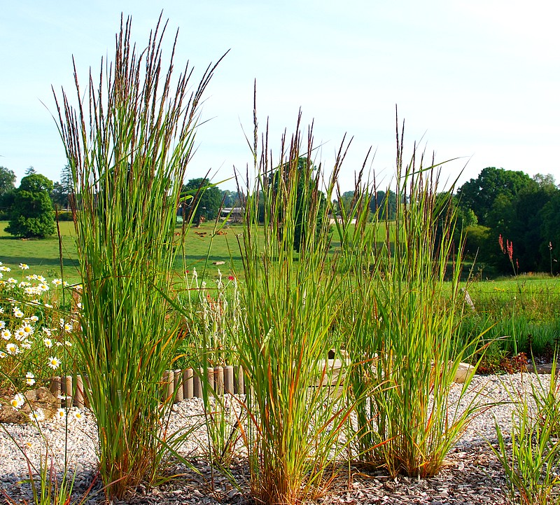 Le Calamagrostis acutiflora Karl foerster est une graminée de 1,8m de haut remarquable par ses grandes panicules brunes suivant la moindre brise de vent.