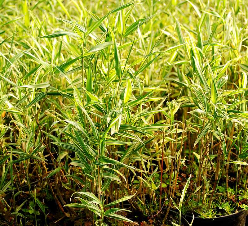 Le Pleioblastus fortunei variegata est un petit bambou rustique (-20°C) de 1.2m de haut remarquable son feuillage lumineux.
